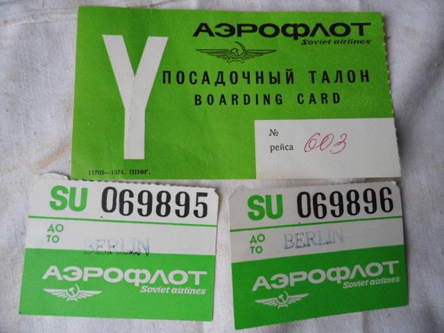 Посадочные талоны аэропортов: Архангельск, Донецк, Запорожье, Иркутск, Киев-Борисполь, Красноярск, Кызыл, Ленинград, Ленинград, Львов, Москва-Шереметьево, Московский городской аэровокзал - Быково, Московский городской аэровокзал - Внуково, Московский городской аэровокзал - Домодедово, Одесса, Печора, Полтава, Симферополь, Симферополь-Заводское, Таллин, Ташкент, Уфа, Ухта, Хабаровск, Хмельницкий, Челябинск